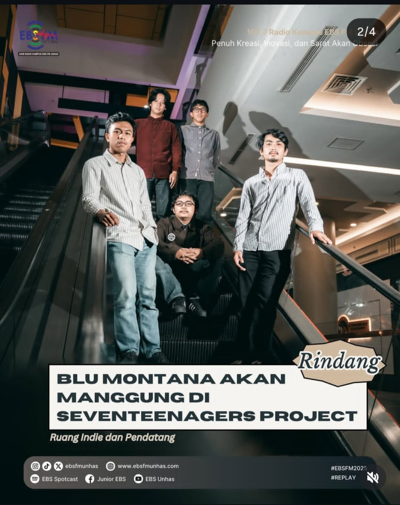 Band lokal asal Makassar @blumontana.sc bakal manggung di @seventeenagers.project tanggal 13 Februari 2026 di Parking Lot Phinisi Point Makassar. Catat tanggalnya, ya!