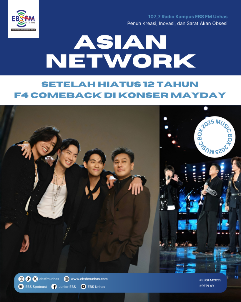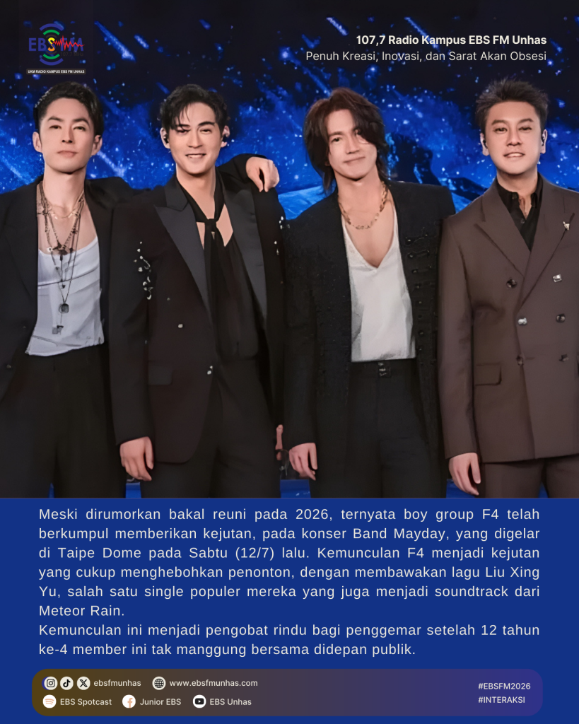 Setelah hiatus selama 12 tahun, boy group legendaris Taiwan F4 akhirnya comeback dan reuni di konser Mayday!