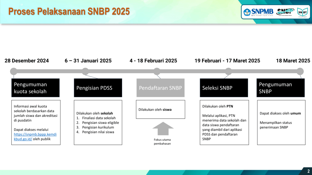 - Seleksi SNBP: 19 Februari — 17 Maret 2025