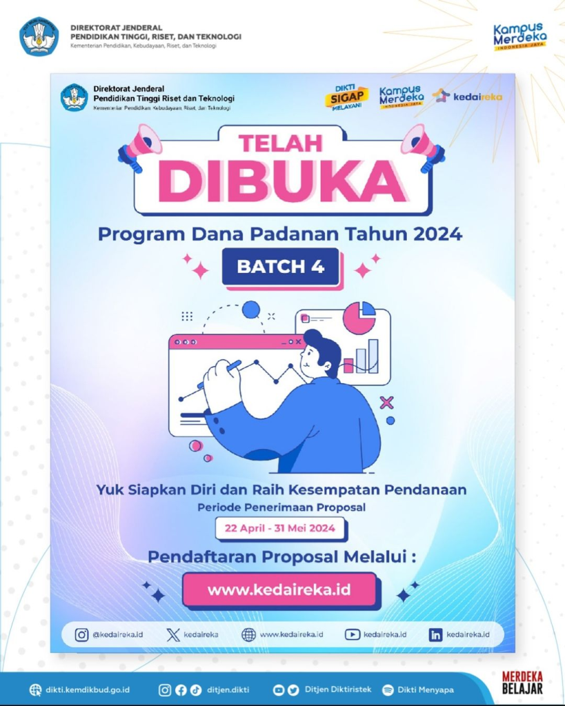 Makassar, EBS FM—Direktorat Jenderal Pendidikan Tinggi Riset dan Teknologi lagi buka program pendanaan loh!💻🤩