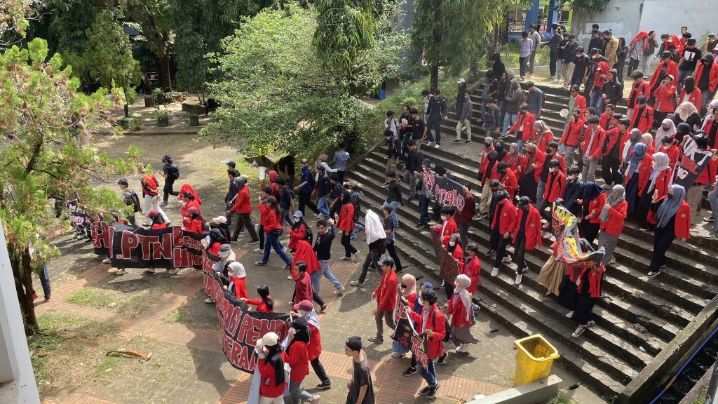 “Berdasarkan hasil dialog terbuka bersama Rektor, tidak ada kejelasan perihal 12 tuntutan mahasiswa, hanya mengonfirmasi SK Rektor terkait UKT golongan 9 yang dicabut, “ungkap salah satu demonstran.