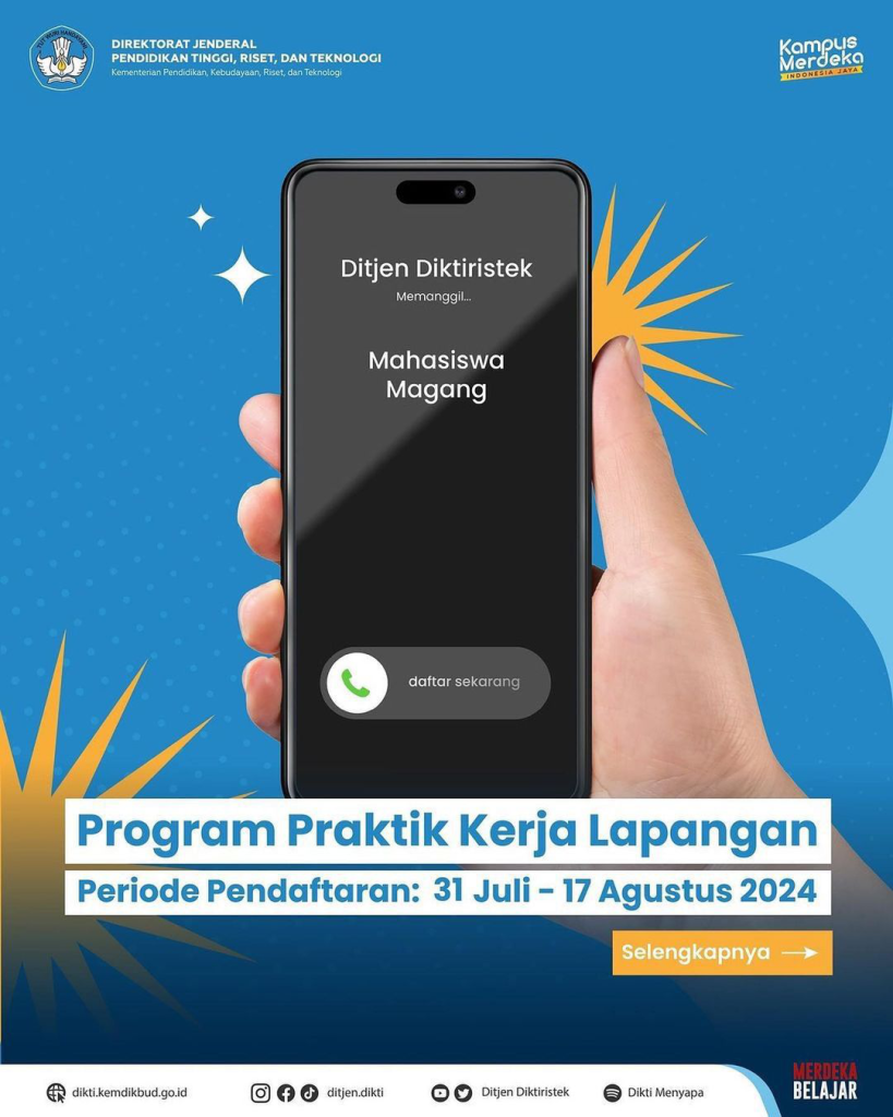 Kebetulan banget, Ditjen Diktiristek membuka peluang untuk seluruh mahasiswa melakukan Praktik Kerja Lapangan (PKL) selama periode September-Desember 2024. 📅