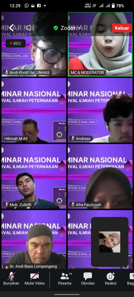 Makassar, EBS FM—Dalam rangka menumbuhkan sikap kritis ilmiah mahasiswa, terutama terhadap fenomena dunia pendidikan yang ada saat ini di Indonesia, UKM Forum Studi Ilmiah Fakultas Peternakan, Universitas Hasanuddin adakan seminar Nasional Festival Ilmiah Peternakan. Kegiatan ini diselenggarakan secara daring melalui zoom meeting, Sabtu (06/04/).